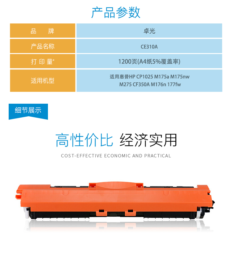 卓光 CE310A 黑色硒鼓墨粉盒(適用惠普m176n硒鼓mfp m177fw cp1025nw m176n 佳能lbp7010c7018c crg329打印機粉盒墨盒)
